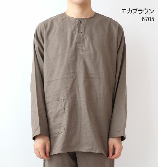 ボタンをはずしただけで全く違う印象に、Tシャツとは違う1枚で大人っぽくおしゃれ印象になれるヘンリーネックデザインです。