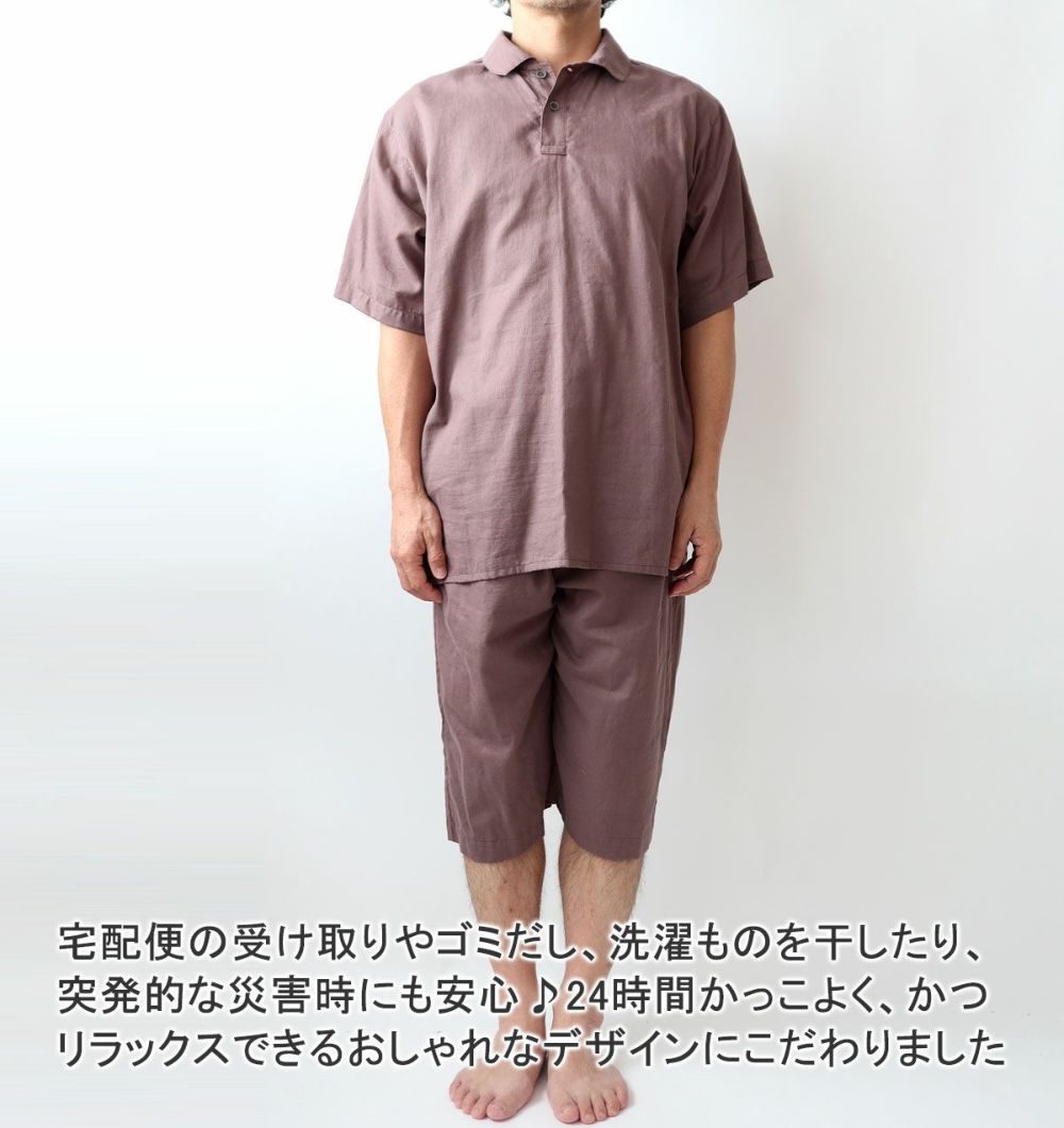 襟があるとパジャマ感も少なく、上下色をかえるとさらに、ちょっとした外出、洗車をしても気にならないおしゃれなポロカラーのデザイン。ポロシャツ好きな方に、24時間着用いただける眠れるポロシャツパジャマです。1枚でもきちんと感がでますので、ルームウェアにも最適です。