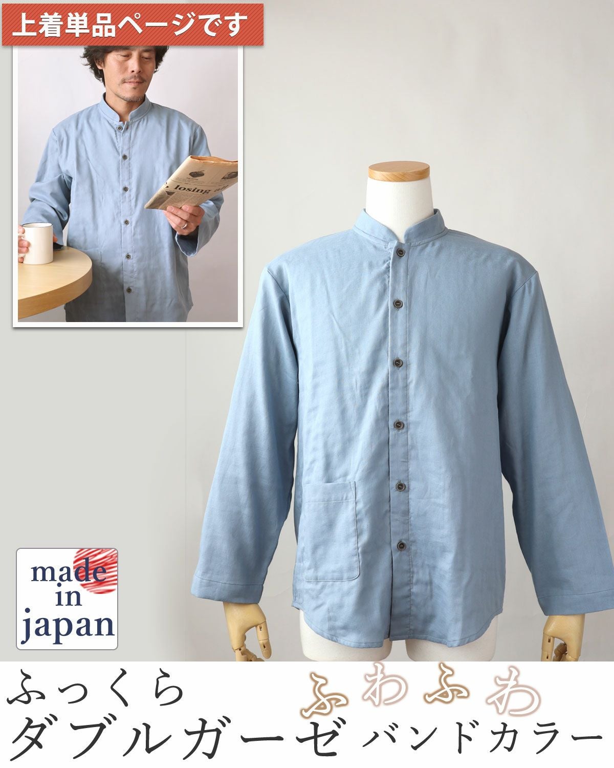 他の画像を見る 毛布なみの暖かさ!冬も使えるガーゼ 3重ガーゼメンズパジャマ上着単品・長袖/前開き/バンドカラー 【オーダーメイド】 冬 綿 ガーゼ 【税込価格】 ¥ 9,680 税込 暖かいのに蒸れにくい、冬に最適な3重ガーゼのメンズパジャマ上着単品です!おしゃれなバンドカラーデザインで、ズボンをお好みのものとコーディネートしてルームウェアとしてもお楽しみいただけます! (0) 詳細を見る お気に入りに登録する