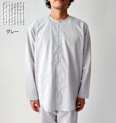 まるでシャツのようなストライプ柄。ズボンだけかえればゴミ出しはもちろん外出にも着ていけそうです!涼しい夏のルームウェアとしても
