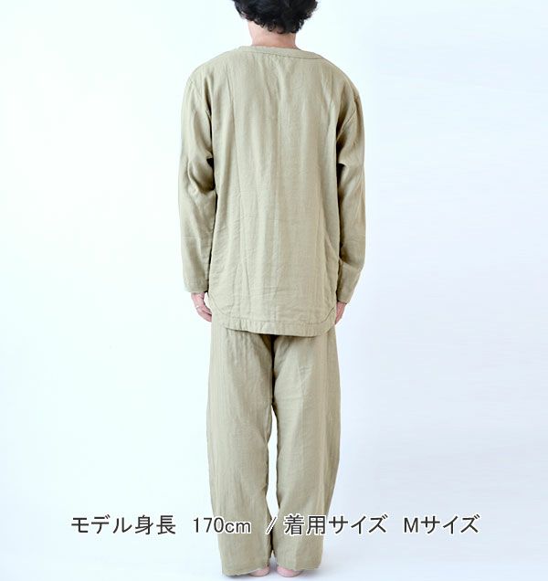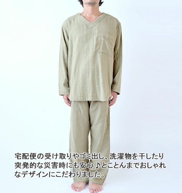 地球にもお肌にも優しい特別な風合い 40オーガニックコットンダブルガーゼメンズパジャマ上着単品・長袖/かぶり/Vネック 【オーダーメイド】