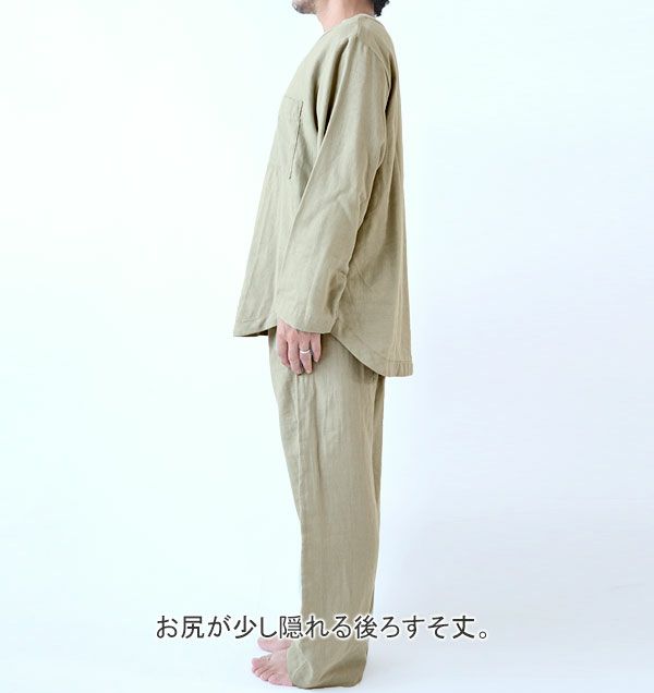 リネン×ストレッチ!夏の快適リラックスパジャマ やわらかニットリネンメンズパジャマ上着単品・長袖/かぶり/Vネック 【オーダーメイド】