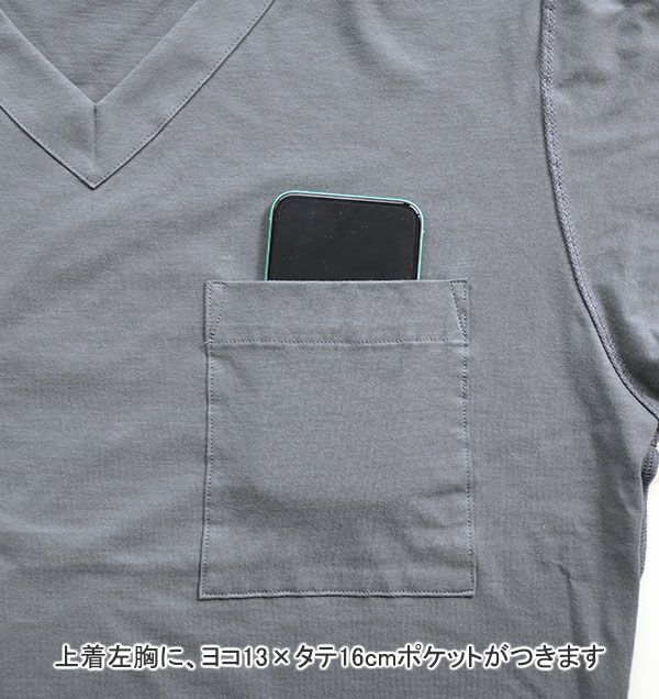| 仕様 | 長袖 かぶり 襟なし Vネック 左胸ポケット(肌のデリケートな方向け縫製仕様) |