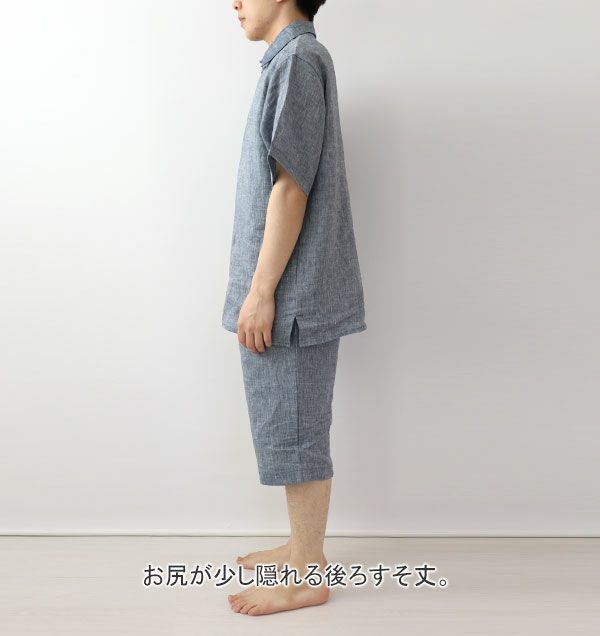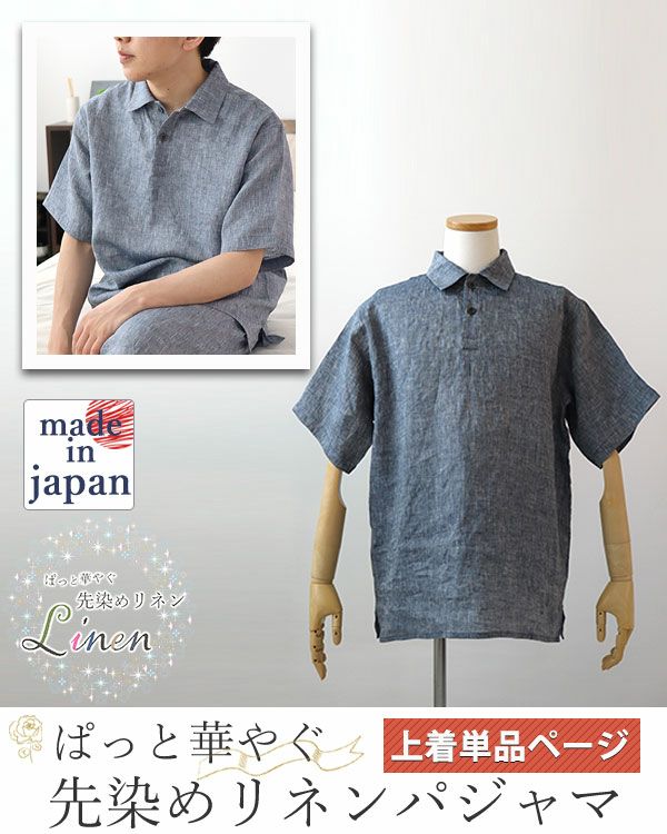 ゆったりリラックス感抜群で就寝時も快適なつくるパジャマのポロカラー。先染めのフランスリネンポロカラーはひんやり涼しく快適♪おしゃれなシャンブレー生地の先染めリネンは、パジャマはもちろんルームウェアにもぴったりです!