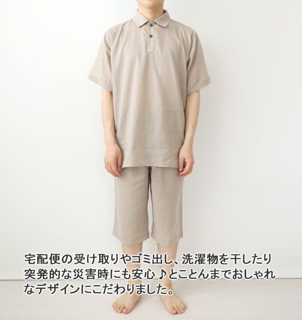 パジャマ感の少ないポロカラーデザイン。ボタンを一つ外してもだらしなくならないので、ルームウェアにもぴったり!きちんと感がありつつも、かぶりタイプだから着脱しやすく、ゆとりのあるサイズ感でリラックスしていただけます。