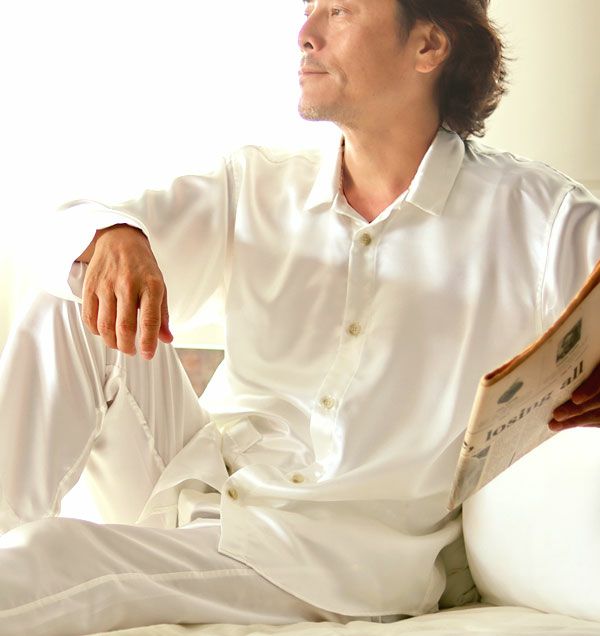 シルクは多孔質のため「夏涼しく、冬温かい」という温度調節の役割をもっています。綿に比べて吸水性、吸湿性が1.5倍でより蒸れを感じにくく、ほどよい保温性がありつつも、温度調整をしてくれるため、夏涼しく、冬温かい、一年中快適なスモールカラーパジャマとなっています。