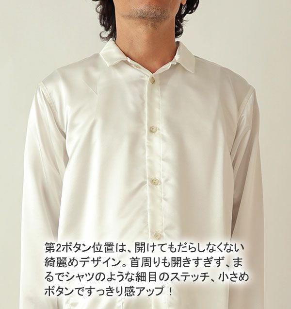 川俣シルクサテンメンズパジャマ上着単品・長袖/前開き/襟あり