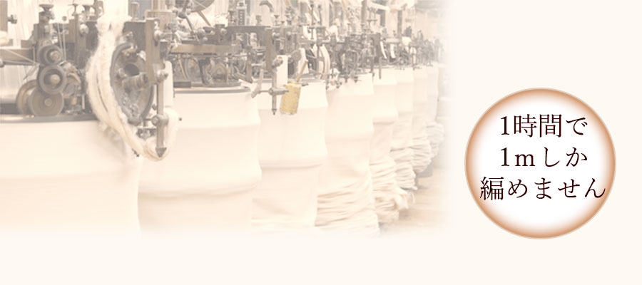 和歌山の編み職人と度目を何度も何度も調整し試行錯誤した結果、まるで吊り編み機で編んだような柔らかい風合いを実現しました。