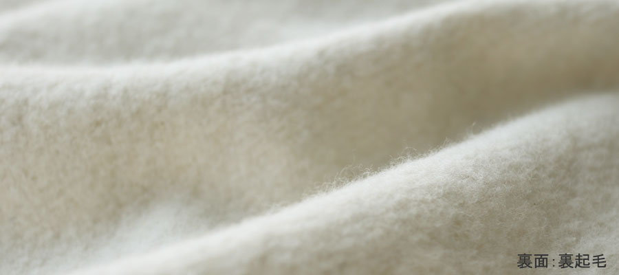 お客様からいただいた毛羽落ちが多いというお声をもとに改良をかさね、起毛後に再度洗いをかけ乾燥させる ひと工程をはさむことで起毛生地のデメリットである毛羽落ちを減らすことに成功しました。洗濯耐久性にも優れ洗濯機でジャブジャブ洗えます。