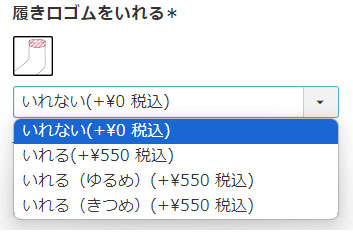 指定のゴム上がり、ゆるめ、きつめも指定できます