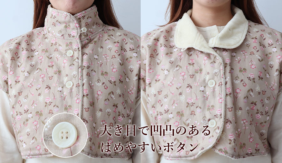 首もおなかもあったか。花柄ダブルガーゼボア肩当て