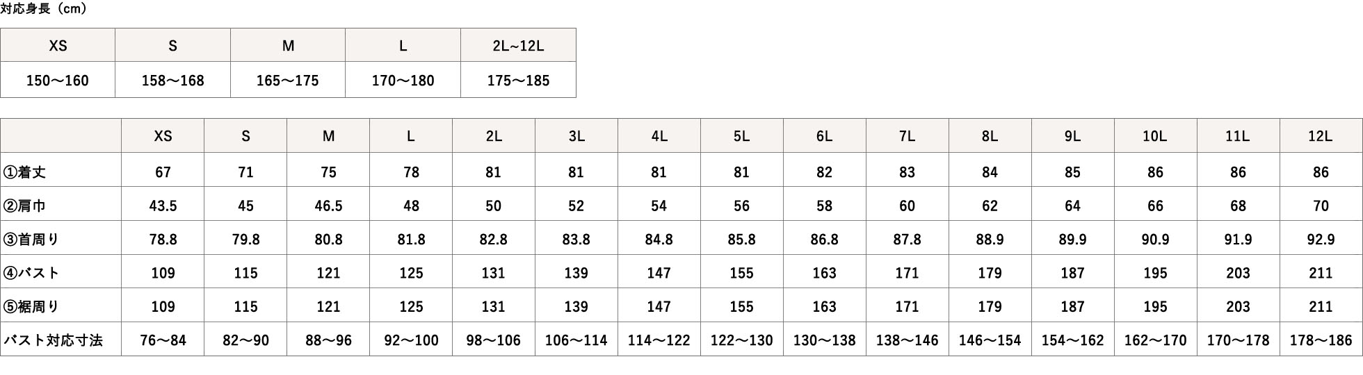 1cm単位で丈をかえられます(未選択の場合はサイズ表どおり)