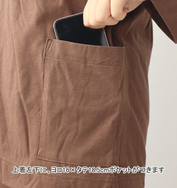 | 仕様 | 長袖 長ズボン 上下セット 上着:前開き 左下ポケット ズボンにはポケットがついていません |