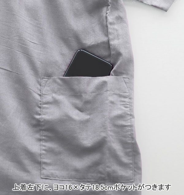 | 仕様 | 半袖 前開き(内、外紐つき) 左下ポケット |