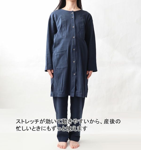 | 仕様 | 長袖 パンツ 上下セット /上着:前開き 襟なし チュニック丈 右腰ポケット 授乳口つき(スナップボタン3個ずつ) |