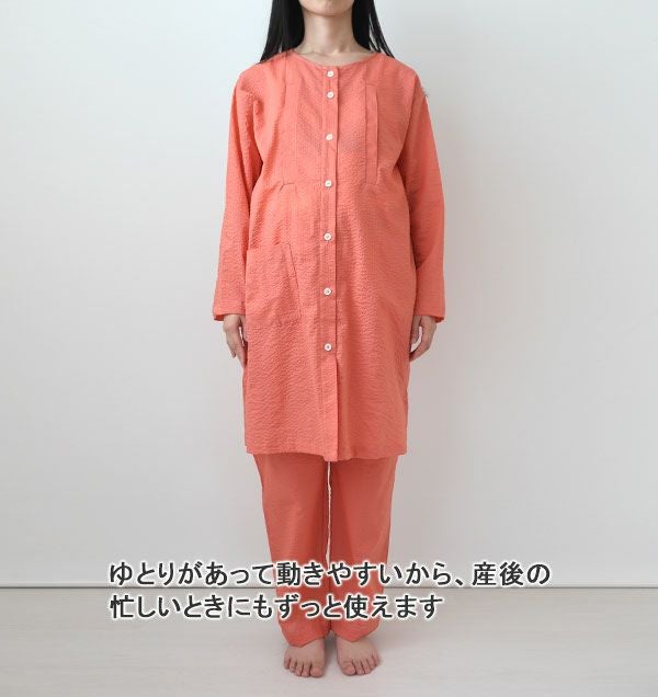 | 仕様 | 長袖 パンツ 上下セット /上着:前開き 襟なし チュニック丈 右腰ポケット 授乳口つき(スナップボタン3個ずつ) |