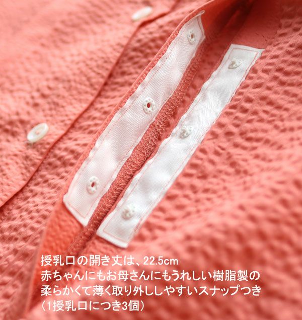 出産は不安やストレスが多くなりがち。お肌や体質が変わる方も。なるべくお肌に違和感を感じるものをなくし、安心してお使いいただけるデザインに。産前から入院、産後の授乳まで長く使えます。シンプルな授乳口は赤ちゃんにあたってもヒヤっとしない樹脂製スナップを。夜中の授乳でも使いやすい大きいさと薄さです。アジャスター付きワッフルゴムは使わない時はしまえるようにカバーを別布で付け肌にあたらないよう工夫しました。出産間近のスタッフに使い心地やデザインのアドバイスをもらいながら試行錯誤しやっと1年半の開発時間を経てお目見えです。