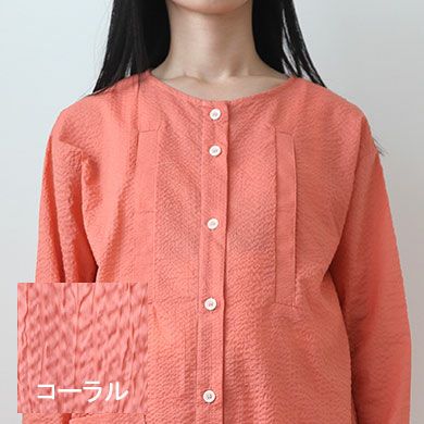 長袖で冷やさない、定番の襟あり前開きパジャマ