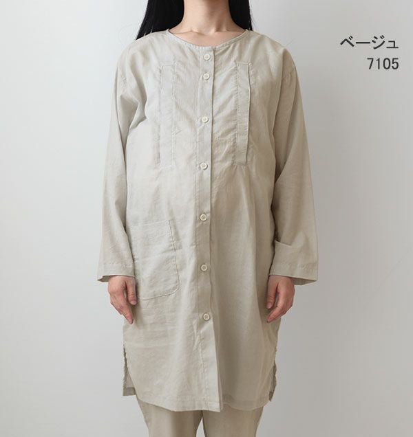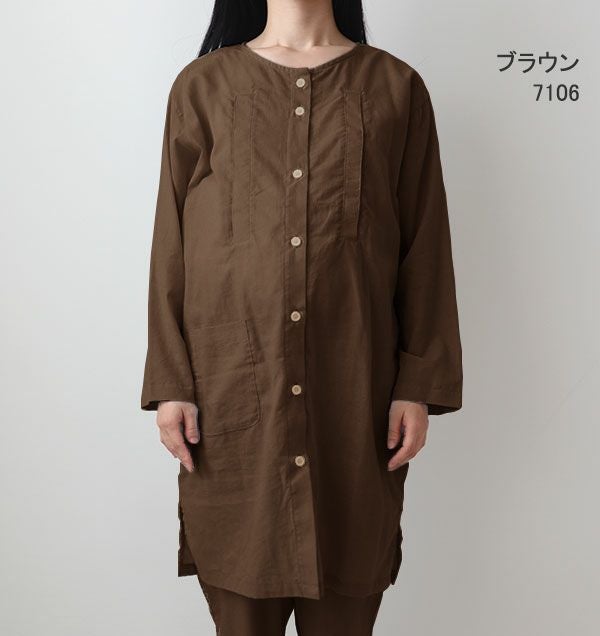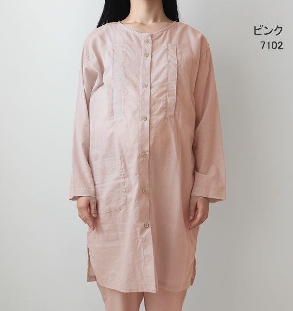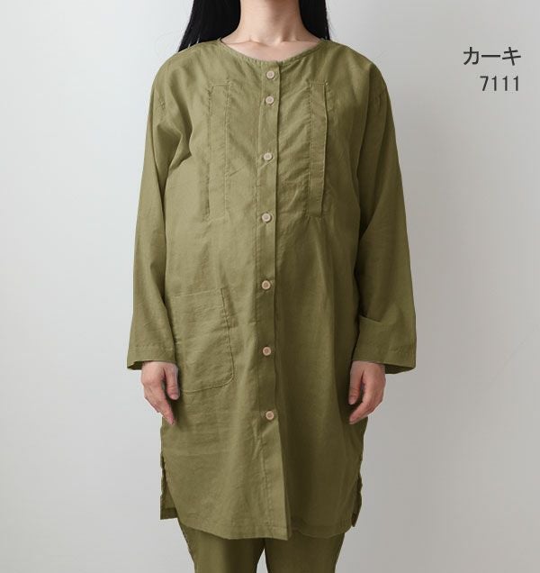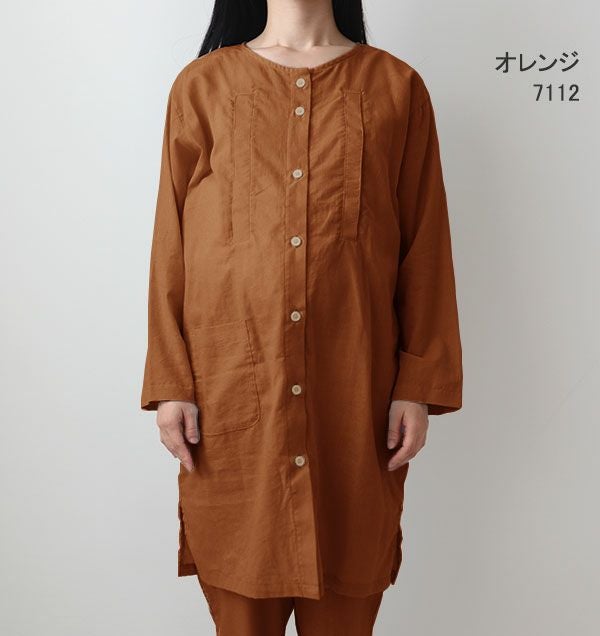 長袖 前開き チュニック丈