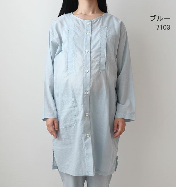 上下セット・長袖/前開き/襟なし