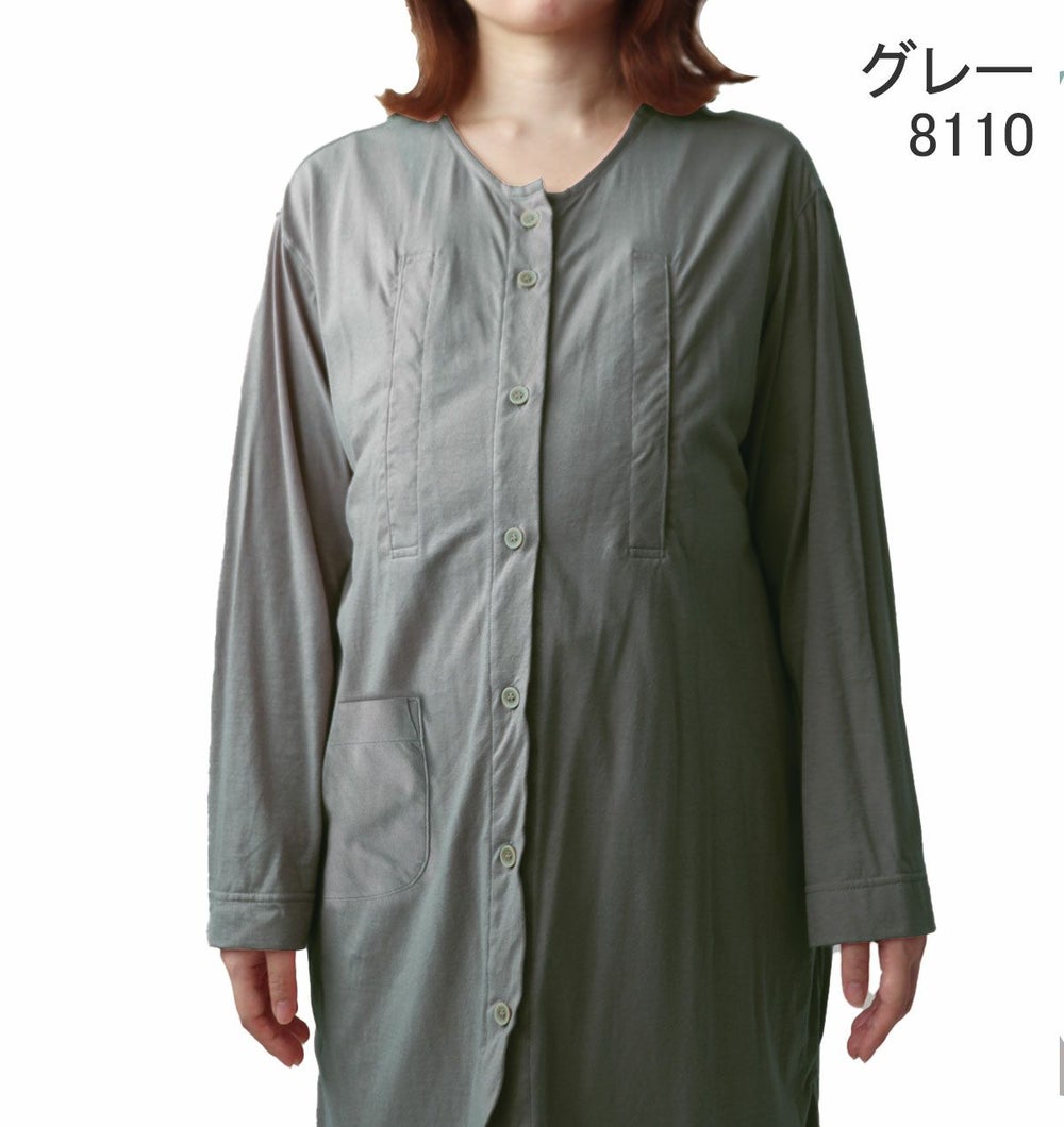 やわらか天竺ニットマタニティパジャマ・長袖/前開き/襟なし