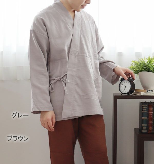40オーガニックコットンダブルガーゼメンズ作務衣上下セット・長袖