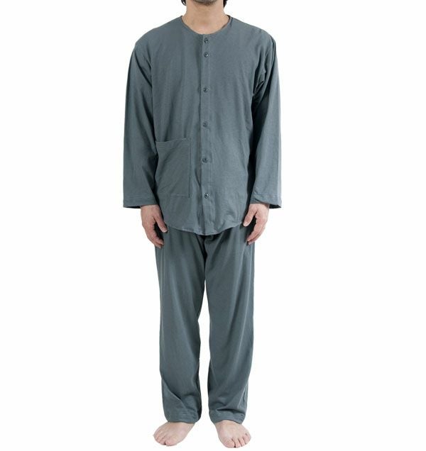 コットンムースメンズ入院パジャマ 上下セット・長袖/前開き/襟なし