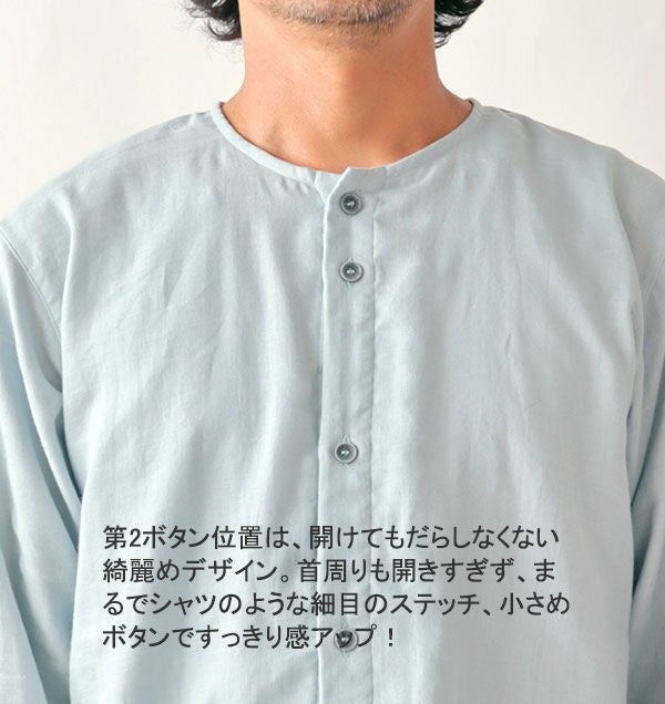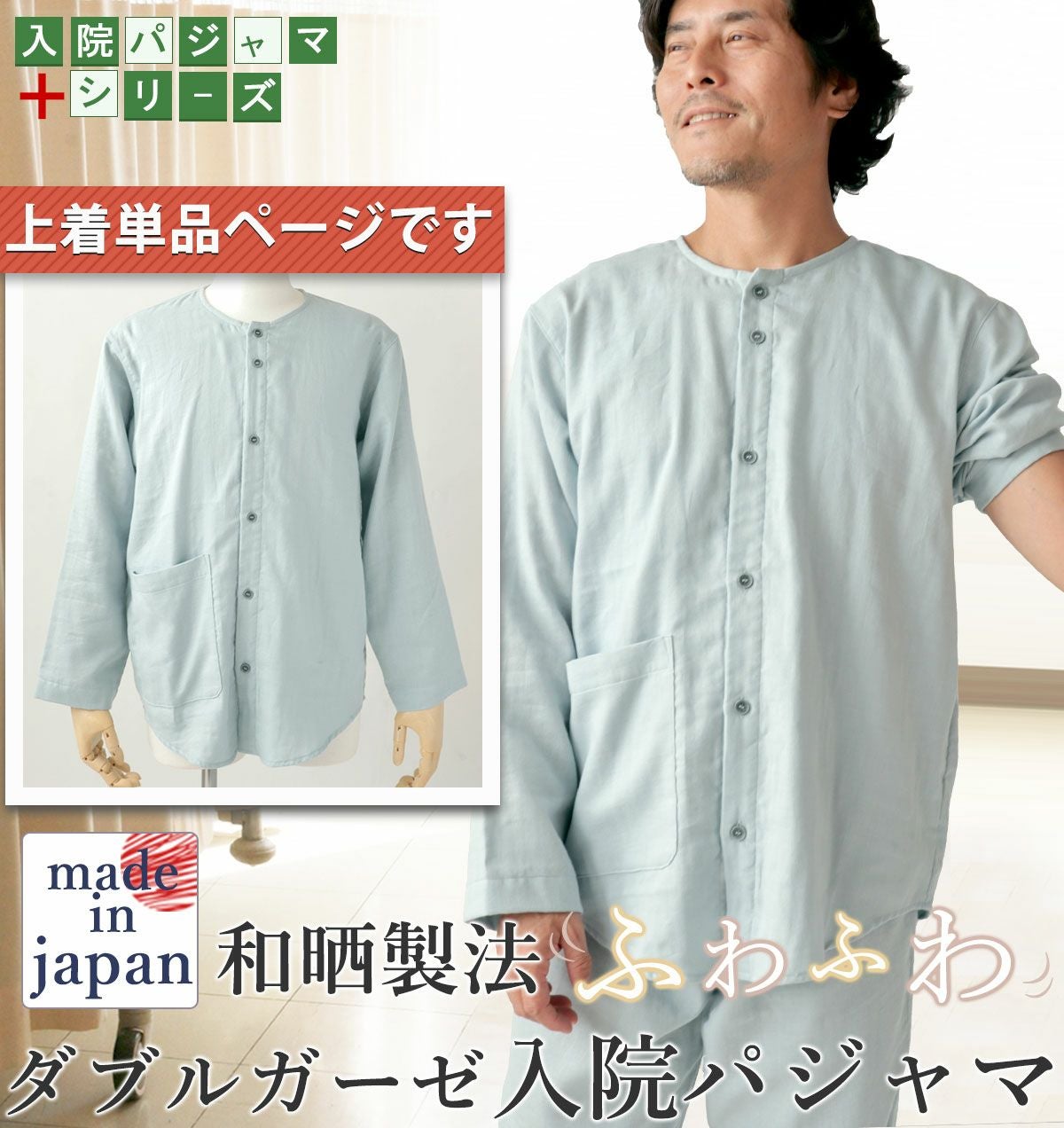 やさしいガーゼが入院生活をサポート 和晒京ふたえガーゼのメンズ入院パジャマ上着単品・長袖/前開き/襟なし 【オーダーメイド】