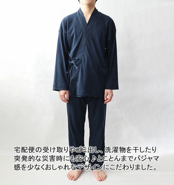 冬の入院生活をサポート コットンムースメンズ入院パジャマ上着単品・長袖/前開き/襟なし 【オーダーメイド】
