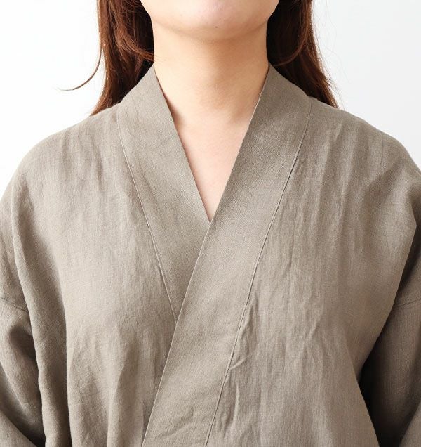 洗い加工のフランスリネンで優雅な夏を やわらかるいリネンレディース作務衣上着単品・長袖 【オーダーメイド】