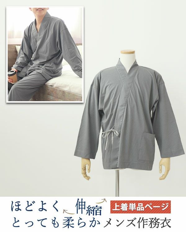 綿なのに、うれしい快適ストレッチ やわらか天竺ニットメンズ作務衣上着単品・長袖 【オーダーメイド】