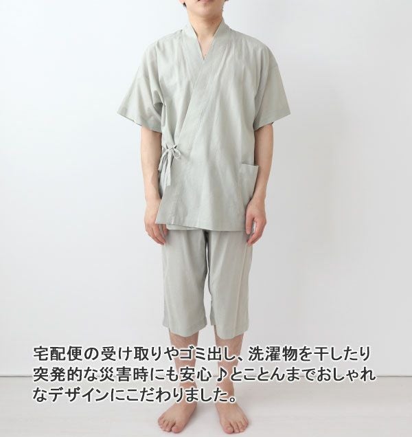 夏のかるふわガーゼメンズ甚平 上下セット・半袖