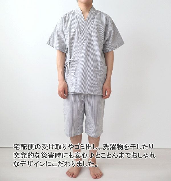 柔らか×軽い×涼ポコポコ感でベタつかない!涼しい爽やかな夏しい!和晒製法の1重ガーゼ 先染めサッカーストライプメンズパジャマ甚平上着単品・半袖 【オーダーメイド】