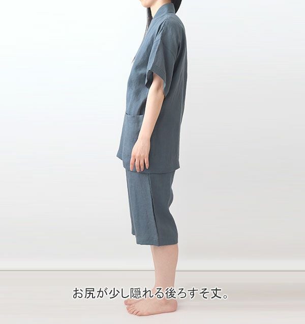 夏に人気のやわらかフランスリネンのレディース甚平上着単品です!60番手糸を使用し、麻とは思えない軽さで夏のリラックスルームウェアとしてもお使いいただけます。股下を調整できる嬉しいオーダーメイド対応です!