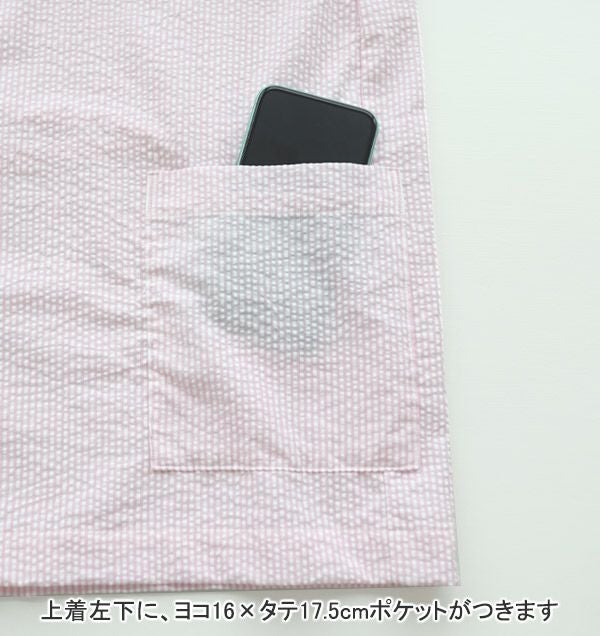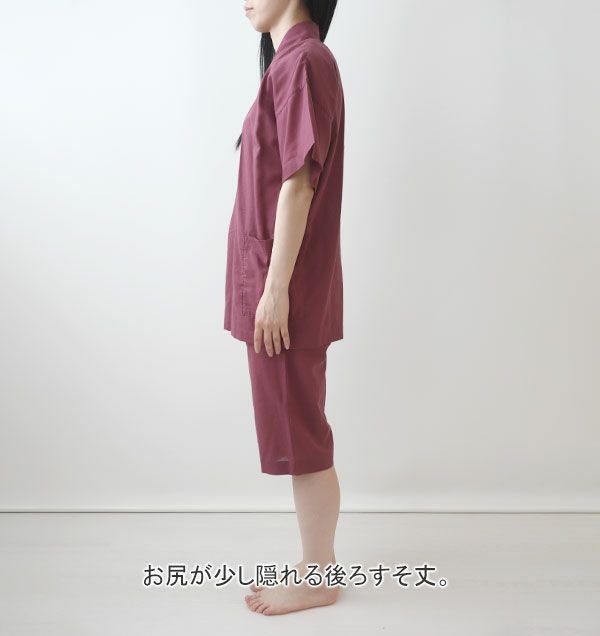 汗かきの方にもおすすめのリップル素材からレディース甚平上着単品です!ポコポコした生地表面でべたつかず、軽くて、夏に爽やかな素材。股下を調整できるセミオーダーメイド対応!