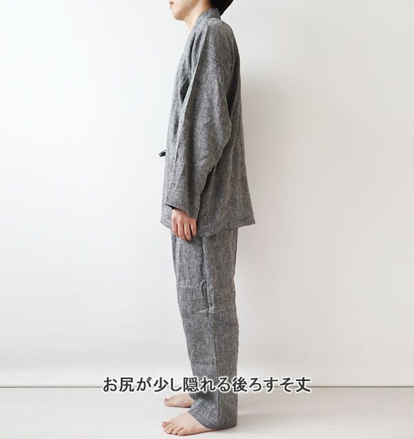 夏に人気のフランスリネンのメンズ甚平の上着単品です!麻ならではの優れた吸放湿性と麻とは思えない柔らかさで、夏を快適にお過ごしいただけます。着丈を調整できるセミオーダーメイド対応です!