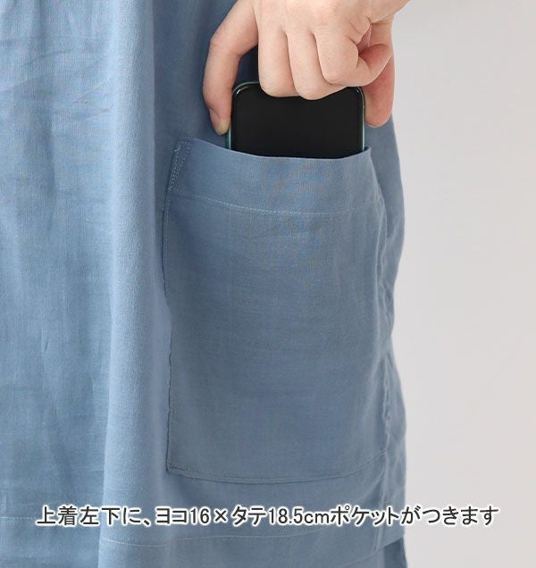 ふんわりやわらかな肌沿いのダブルガーゼ。ヒモ仕様で身幅の調節も可能。