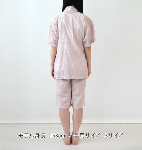 レディース甚平用ハーフパンツ、素材には爽やかな肌触りのリップルを採用。軽くて、ぽこぽことした凹凸のある生地表面でべたつかず快適に夏をお過ごしいただけます。母の日ギフトにもおすすめです。