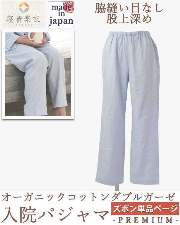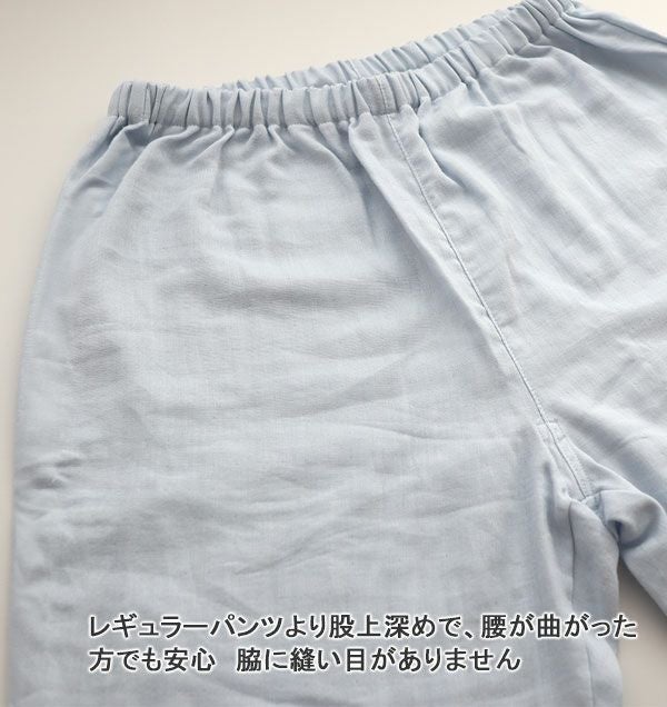 入院、介護に脇の縫い目なしで床ずれ対策にも 股上ふかめ入院パジャマプレミアム 40オーガニックコットンダブルガーゼレディースパジャマズボン単品・長ズボン 【オーダーメイド】