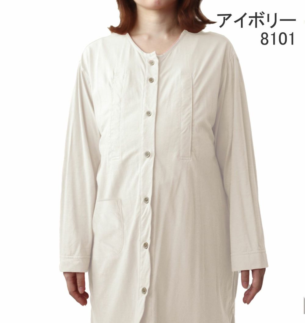 やわらか天竺ニットマタニティパジャマ・長袖/前開き/襟なし
