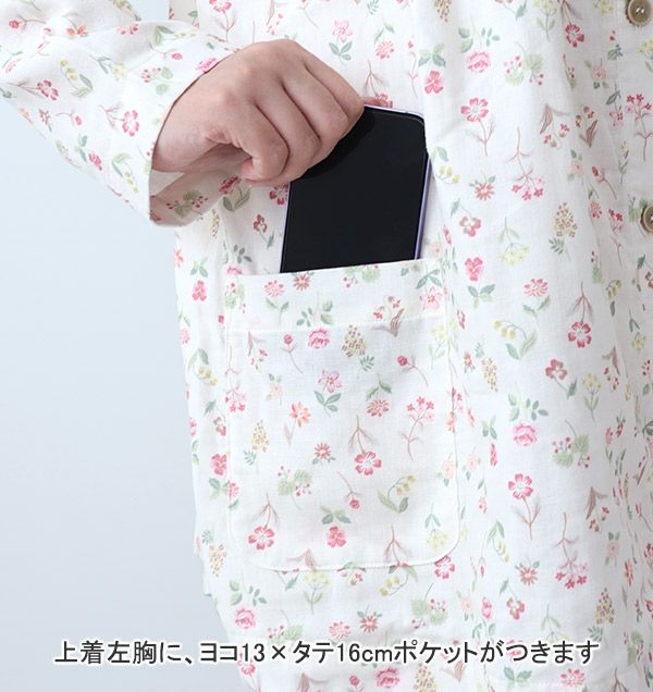 他の画像を見る フレンチカジュアルなテイスト 花柄ダブルガーゼ-petit flora-レディースパジャマ上着単品・長袖/前開き/Aライン/胸元切替タック 【オーダーメイド】 春 秋 綿 ガーゼ 胸目立たない 【税込価格】 ¥ 8,030 税込 人にも地球にも安心安全なオーガニックコットンの二重ガーゼでお作りしたレディースVネックパジャマです!嬉しい上着単品で洗い替えにもおすすめで、洗濯するほどに柔らかく心地よい風合いに変化します。 (0) 詳細を見る お気に入りに登録する