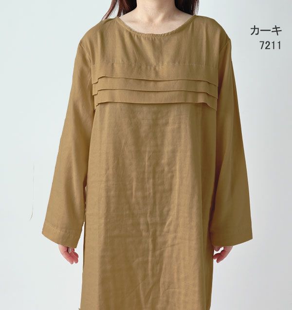 ふわふわ柔らかダブルガーゼレディースワンピース・長袖/かぶり/ラウンドネック