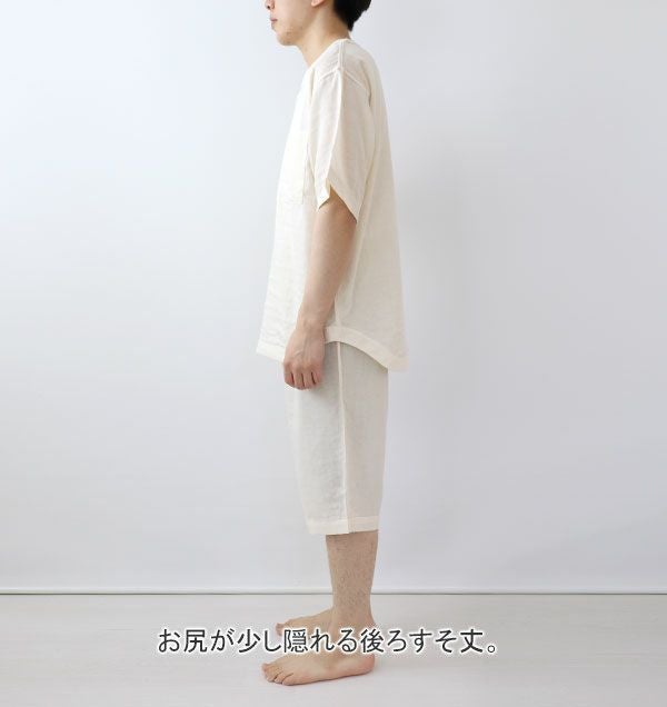 80オーガニック超長綿ダブルガーゼ-HAGOROMO-メンズ敏感肌パジャマ上着単品・半袖/かぶり/Vネック