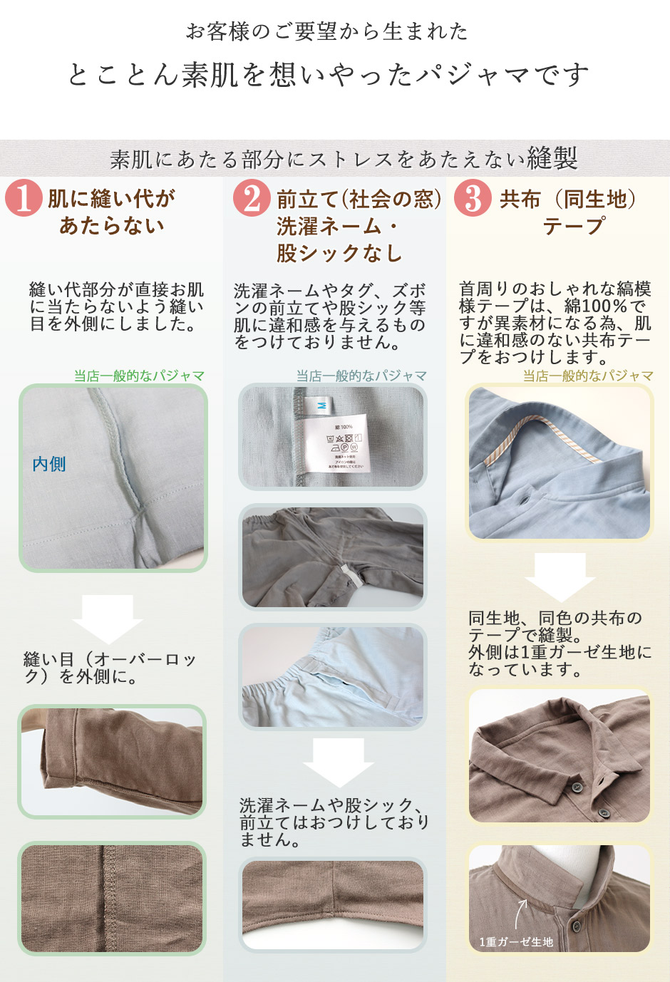 縫い目が肌に当たらないやさしいパジャマ
