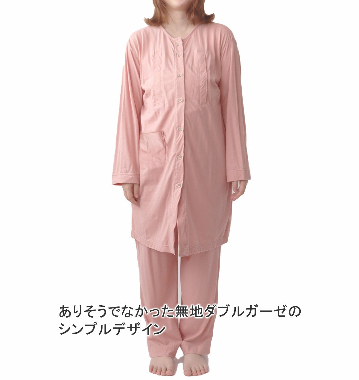 むれにくいあったか敏感肌パジャマ 長袖/前開き/襟なし