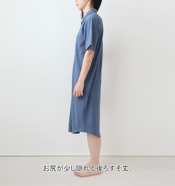 ふわっと軽やか、ベタつかない。夏の爽快パジャマ エアリーリップルレディースワンピース・半袖/前開き/襟あり 【オーダーメイド】