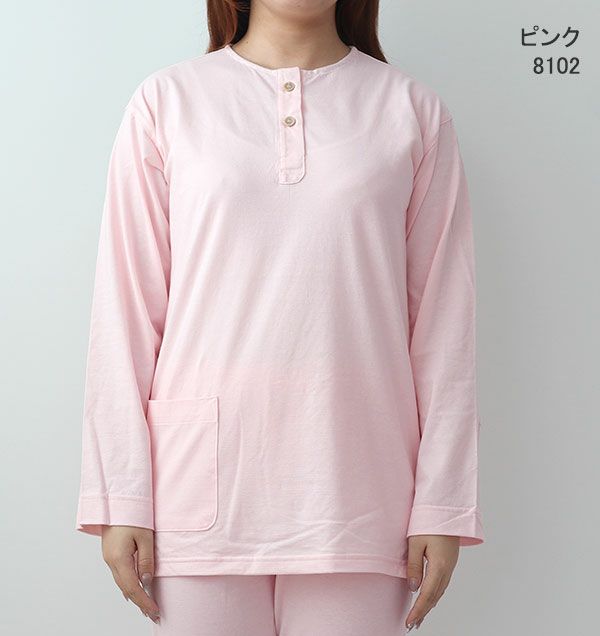 綿なのに、うれしい快適ストレッチ やわらか天竺ニットレディースパジャマ上下セット・長袖/かぶり/ヘンリーネック 【オーダーメイド】