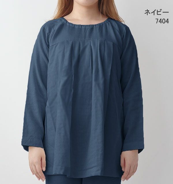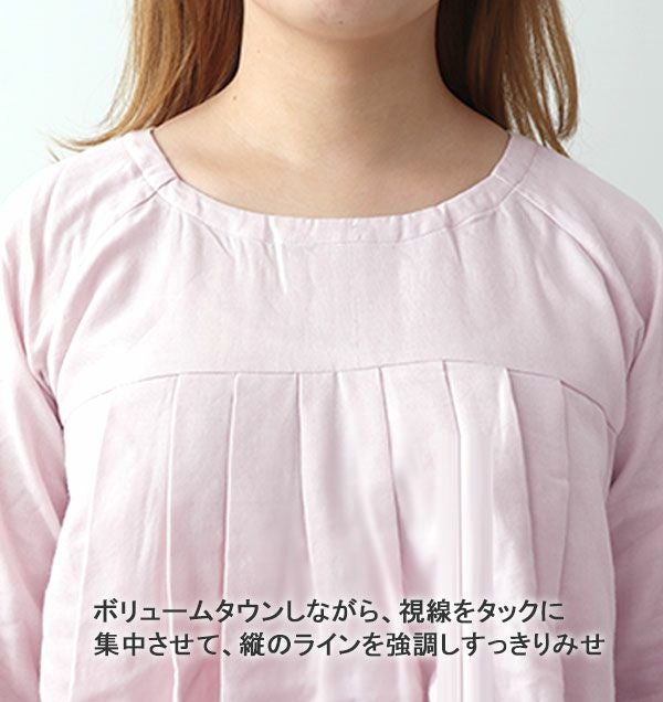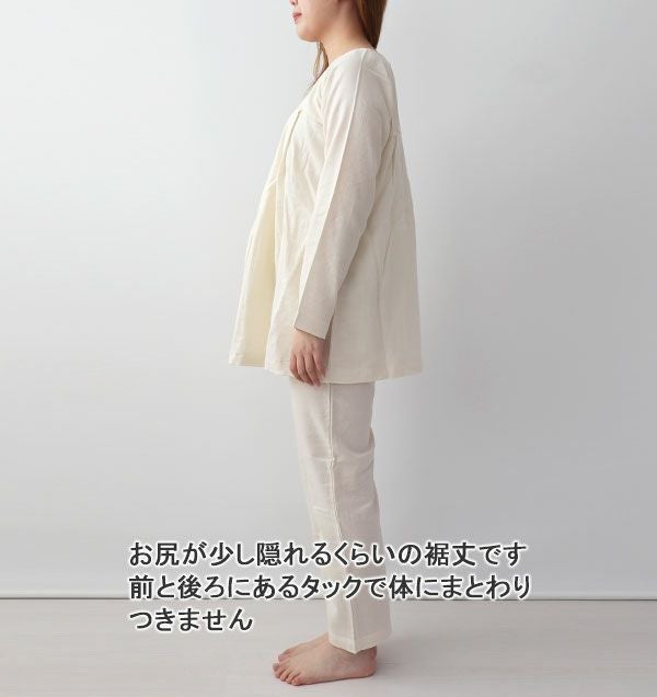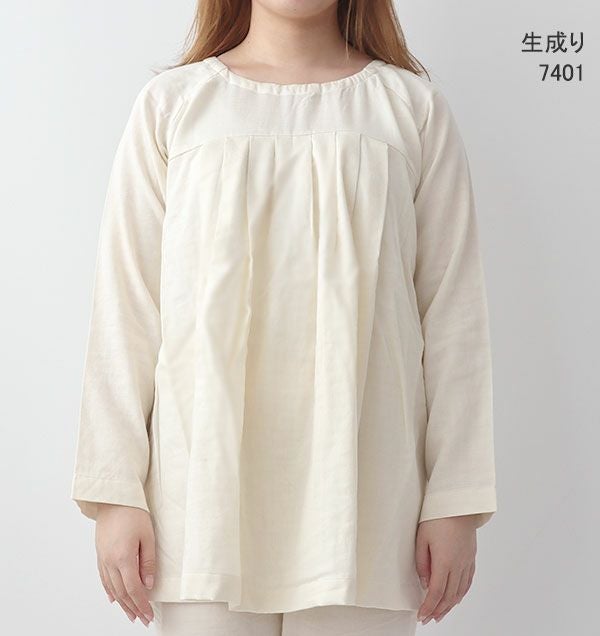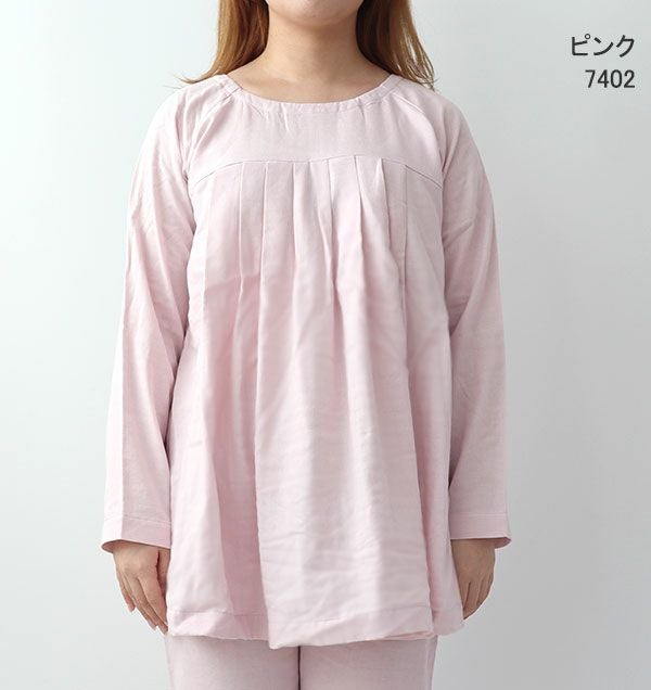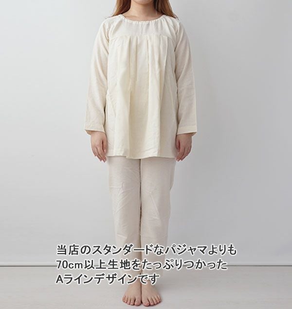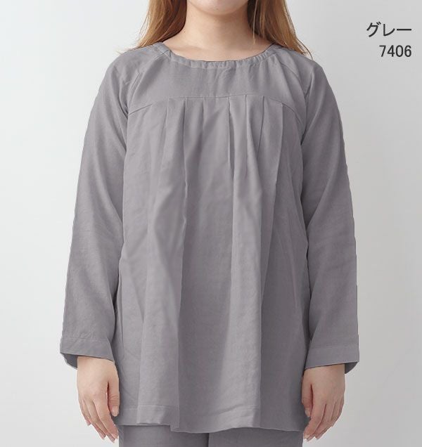 40オーガニックコットンダブルガーゼレディースパジャマ上下セット・長袖/かぶり/Aライン/胸元切替タック