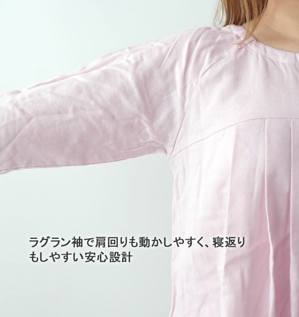 ラグラン袖で肩周りもゆったり、寝返りもしやすい