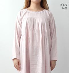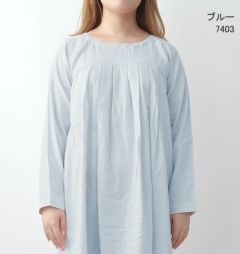 40オーガニックコットンダブルガーゼレディースワンピース・長袖/かぶり/Aライン/胸元切替タック